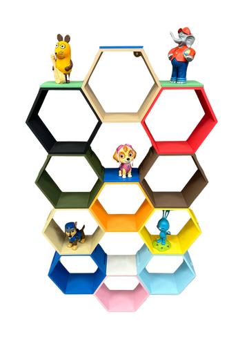 Unsere wabenförmigen HONEYcomb's halten Deine Tonie®-Figuren magnetisch an Ort und Stelle. Sie sind alle mit einer unscheinbaren Wandhalterung ausgestattet, so dass Du das Regal entweder auf dem Boden platzieren oder es sicher an die Wand schrauben kannst.